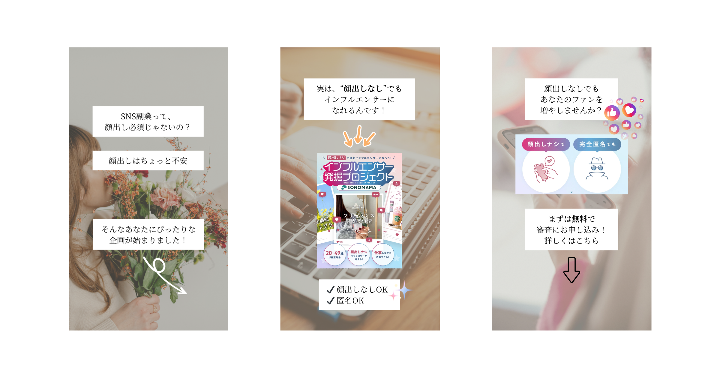 ・問題提起→解決方法→CTAの順で画像を作成しています